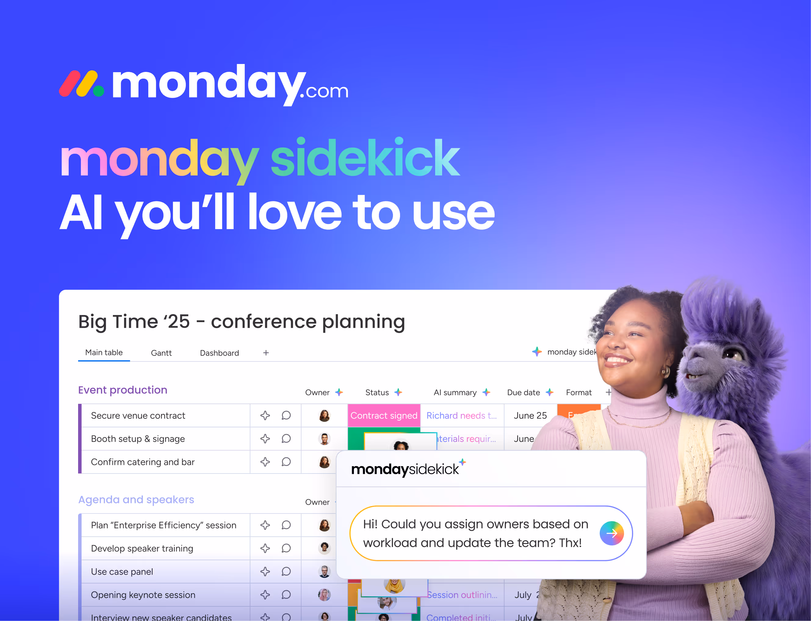 In campaigns, the llama is never just decoration. She’s the solution—showing up in moments of chaos to bring structure, momentum, and clarity. She reflects the optimism built into monday.com.